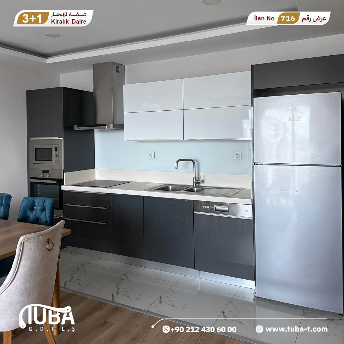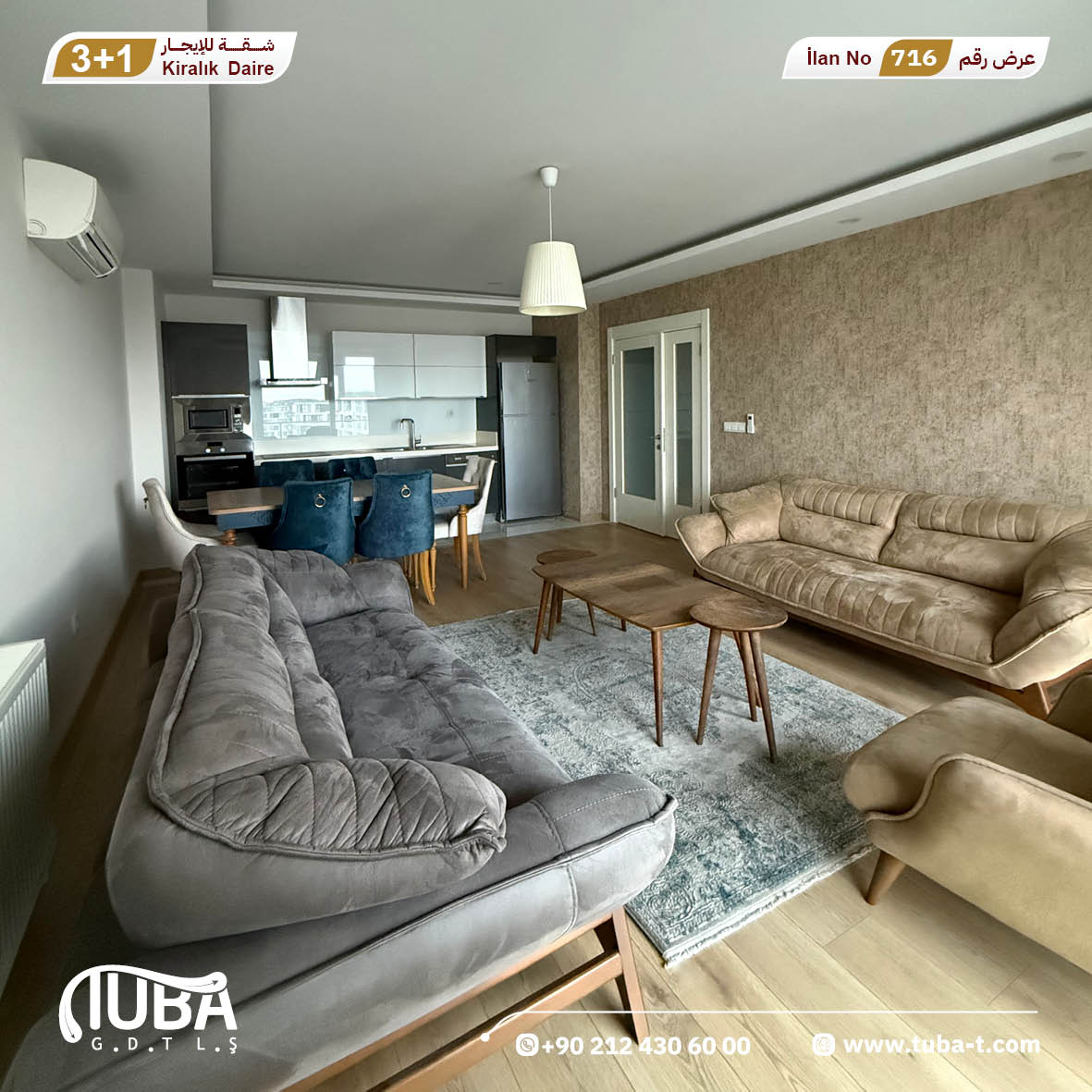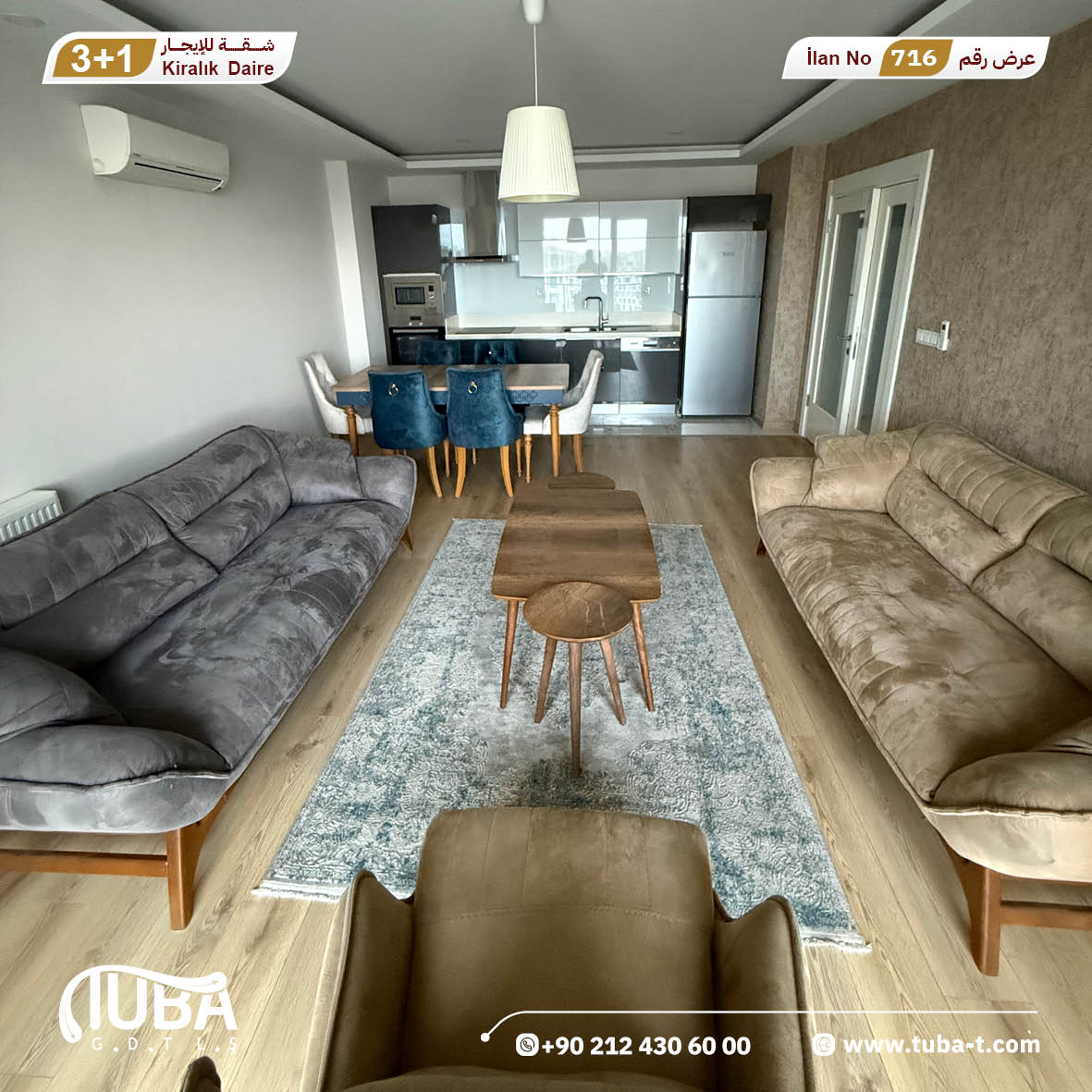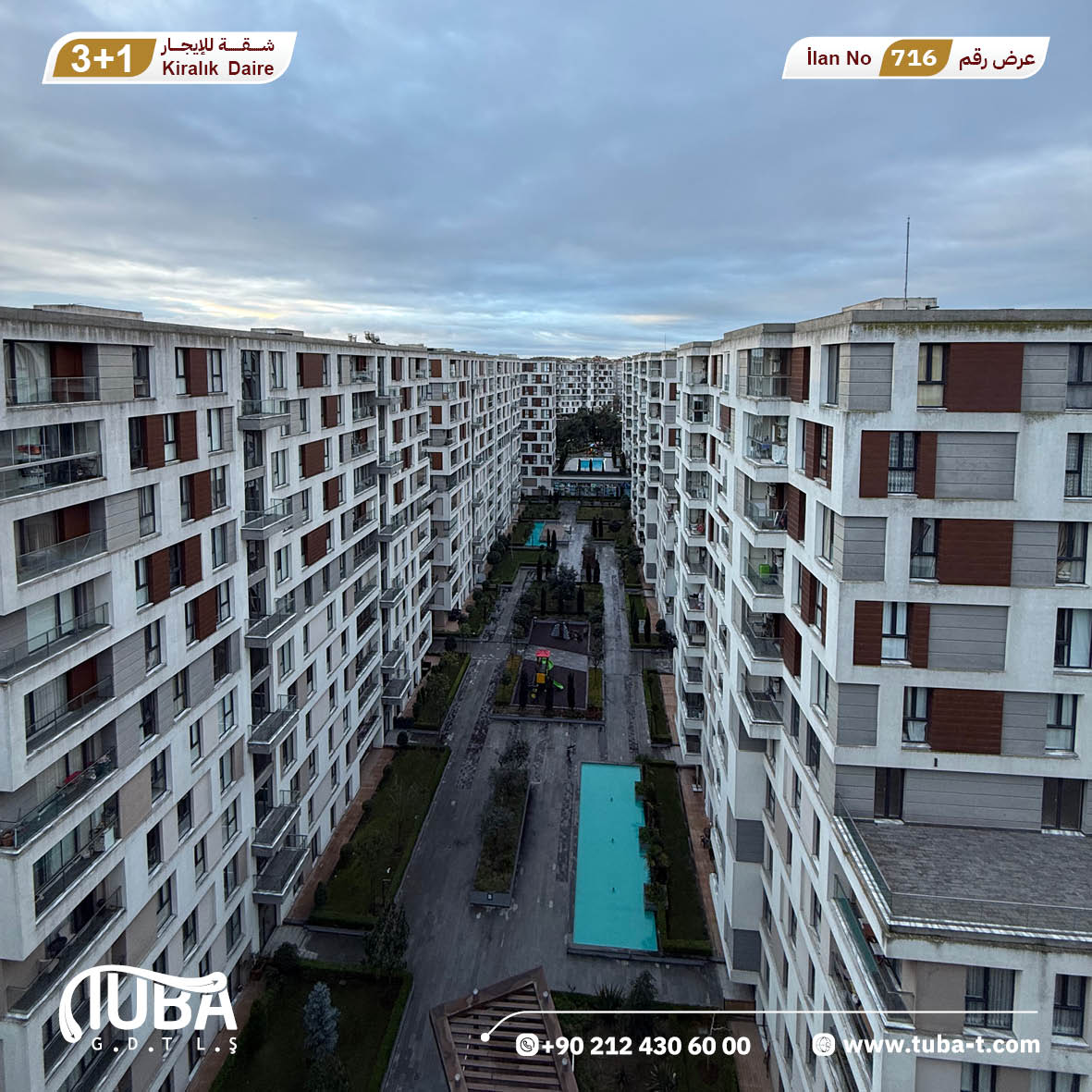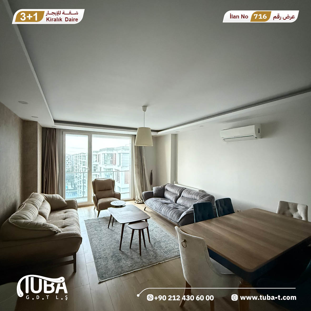 عرض رقم 716 شقة 3+1 مفروشة للايجار مجمع WESTSİDE